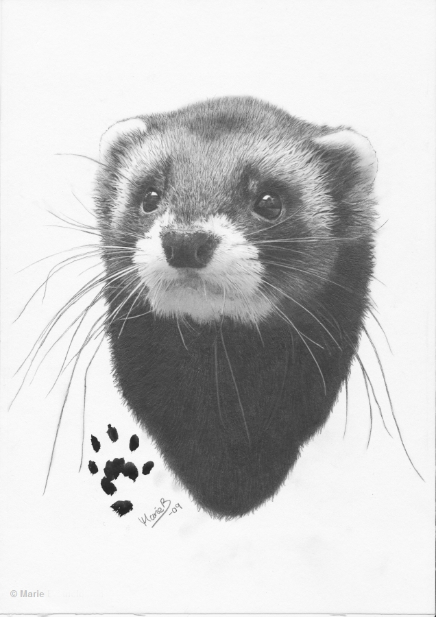 graphite B pencil, kneaded eraser, Q-tip, A4 water colour paper The pawprint is his actual print in watercolour.