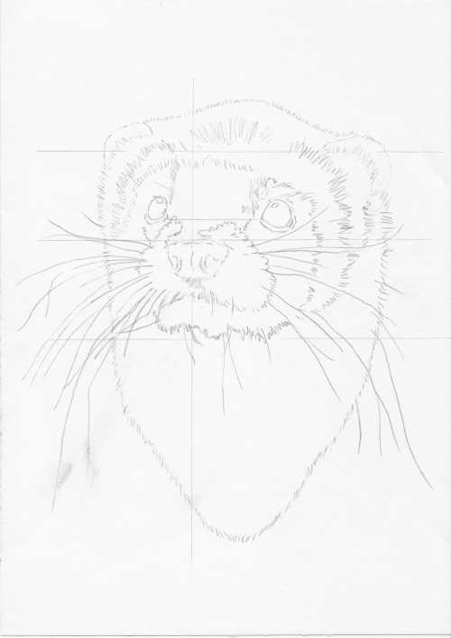 I start by making a sketch, in this case from a reference photo. I use a few lines to help me get the proportions right.