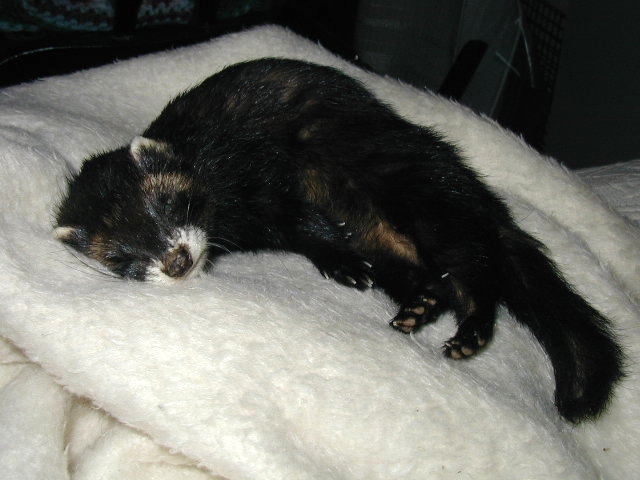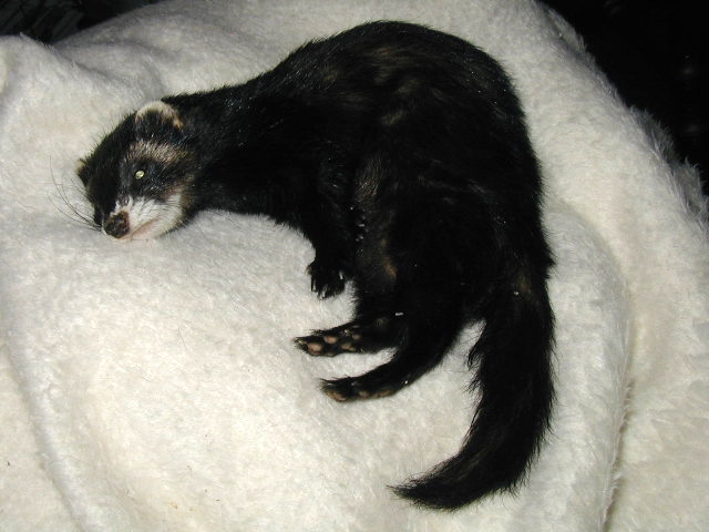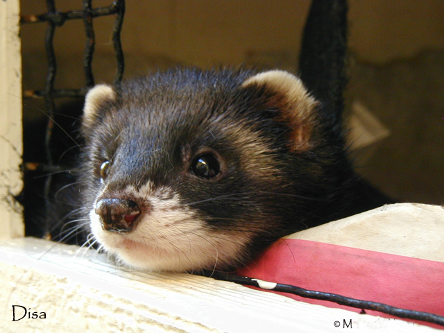 DISA ("Kulan") 2004 ~ 2010indexMy most precious little Disa has tragically died due to the effects of a severe enteritis believed to be FECV (more information on this can be found here). Disa broke out in serious enteritis on August 25. Like the others, she was badly affected by the disease, but she soon turned into the most ill of them all. Despite all efforts she lost her brave battle against the disease 6 days later when she was inflicted with severe gastric bleeding. She passed quietly early in the morning on September 1. Ever since Disa was born in 2004 she has been my absolute favourite jill, and words cannot describe how devastating this loss is to me. She was also the grand result of many years and generations of breeding, and one of the most outstanding ferrets I've ever produced in my ferretry. Disa was affectionately called Kulan, which roughly translates into "ball" in English. She died in her prime, only 6 years old, and she would likely have had many years left to live. Disa, I'm so sorry. This was not how it was supposed to end. There will never be another one like you. Rest in peace. Disa 5 weeks old in 2004: