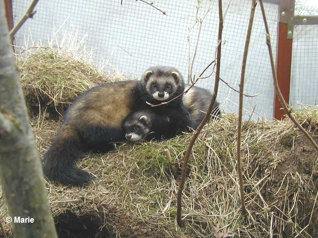 The most important improvement is that they all now eat on their own. They get a specially prepared food that is very rich and also easily digested. They get vitamin and mineral supplements as well. There is still sometimes need for syringe feeding but only occasionally. Besides the pred they are all on profylactic antibiotics and some need sucralfate. I've tried several probiotic treatments such as Canikur Pro and we are currently trying with Immunovet. Those type of treatments have had none, little or only temporary effect. Update Oct 15. I've received a couple of questions. Apparently, there's a misunderstanding that my ferrets have lived isolated from other ferrets for several generations. That is certainly not the case. Especially not since I've had to bring in new ferrets for each generation since my line is outcrossed. My ferrets have had contact with other ferrets over the years, however, I don't usually have much contact with the group that is active in showing and such. And that group is the primary group that is spreading this disease. All of my current ferrets, except for Larven, have in fact been infected before with FECV (like this time diagnosed by excluding other diseases). That was in 2004 and the ferrets were between the ages of kits to 3 years old. This time they are 6-9 years old and they have apparently little or no immunity from last time, as I've mentioned in the text above. The disease this time is also definitely more aggressive so doesn't seem to be exactly the same variant as before. Update Oct 30. Most of the ferrets have unfortunately had another relapse when I took them off the prednisolone. It presented as really bad diarrhea and gradual loss of appetite which got progressively worse. I had to start all over again with the meds and the syringe feedings. It's incredibly disheartening and it's very sad to have to watch them struggle whithout really being able to help. I've managed to stabibilize them again but it's now come to a point where we've had to realise that this is about as good as it's going to get. From my previous experience I know that this type of chronic diarrhea is very difficult to get rid of in ferrets. I will continue to provide supportive care whenever needed and do my best to feed them an extra nutritious and especially adapted diet. And I will of course continue to search for any option that might offer any kind of improvement. If necessary we might have to consider stronger meds further down the line. We'll see what happens. I'm currently researching prebiotics and probiotics since I think they will benefit from that, particularly in the long term. Disa and Darius, spring 2010: