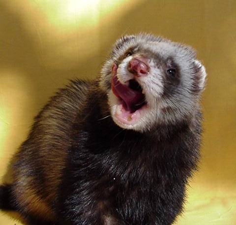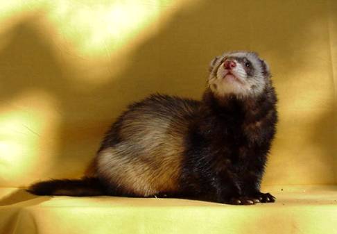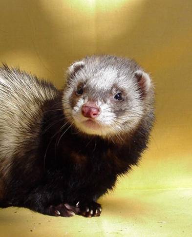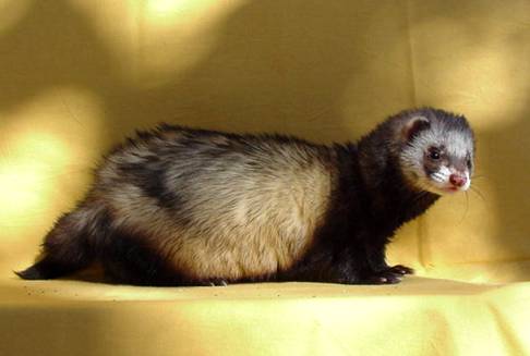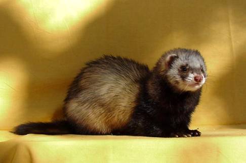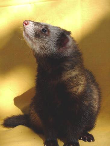 Litters: * 1997, with (name not known), 3 kits(2 killed by jill) * 1997, with (same as above), 11 kits(2 killed by other ferret) * 1997, with Minnie, 7 kits * 1997, with Sara, 6 kits * 2001, with Topsy, 5 kits Medical: Benign mast cell tumour growing from scar tissue in a bite wound over his right eye. Surgically removed. Photo |