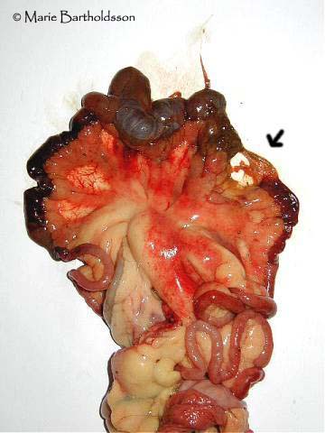 some wood chips together with his food. The small intestine had ruptured about 25-50 cm