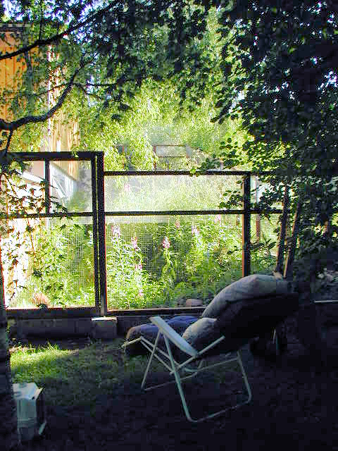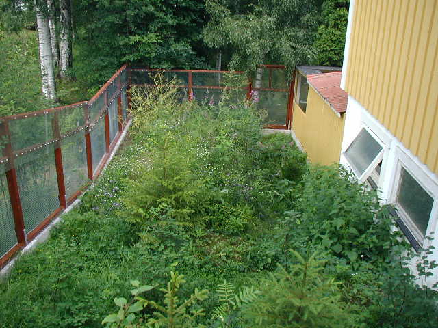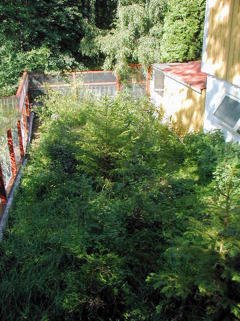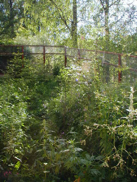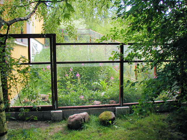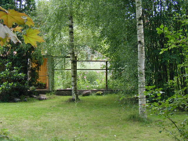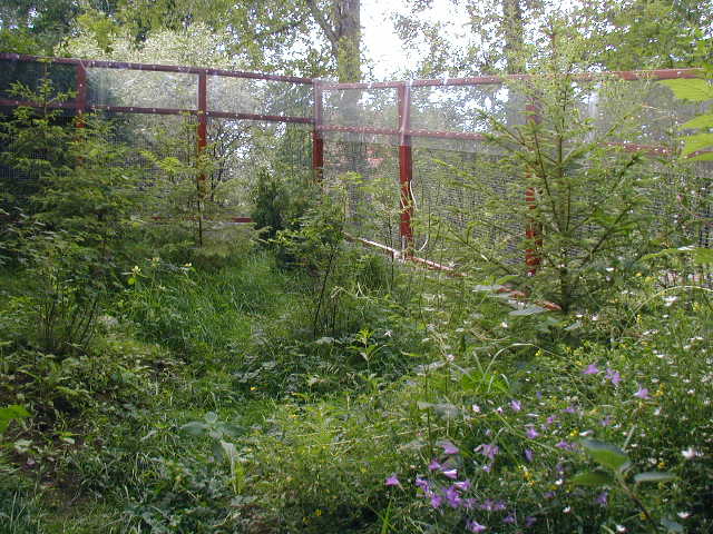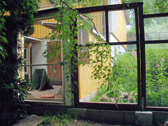 Here's the nature enclosure to the right and the smaller enclosure to left behind the rodhodendron.
