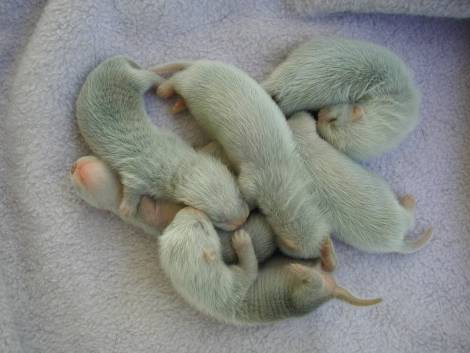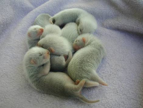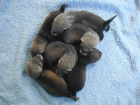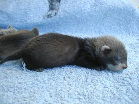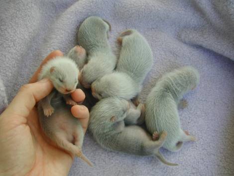 The jills have less grey baby fur and more shiny hairs than the hobs.