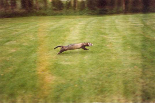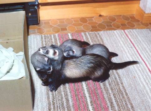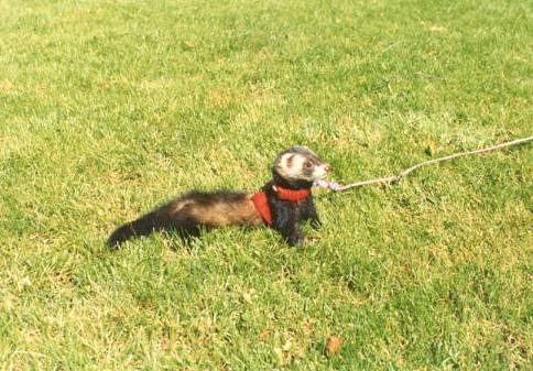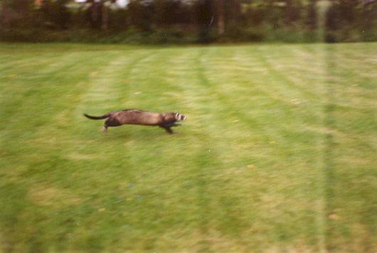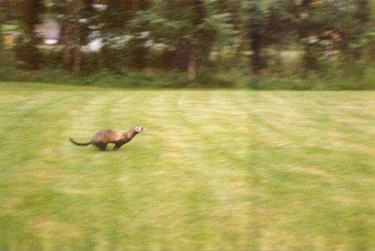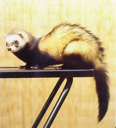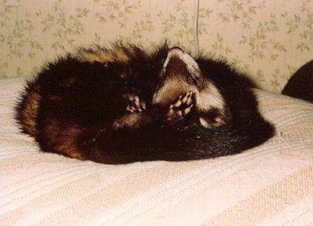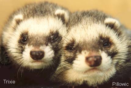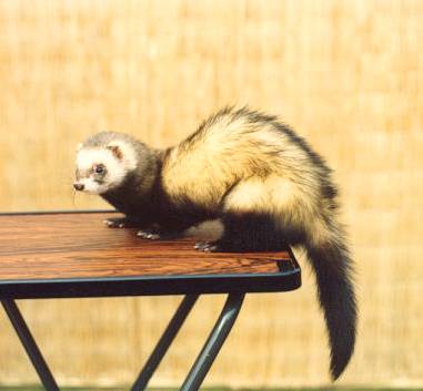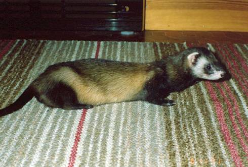 Trixie was my very first ferret! Litters: * 1989, with Milou, STIF 89/0109, 9 kits: Cujo * 1991, with Dino, STIF 90/0041, 6 kits(3 put down/accident): Clavius Astrodoll Miss Pleione In the summer 1994 Trixie began suffering from epileptic episodes, and eventually had to be euthanised in January, 1995, due to a grand mal seizure that could not be controlled. |